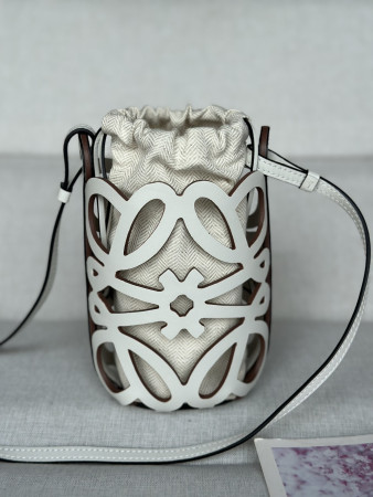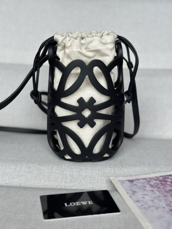 L0ew* anagram cut-out pocket in classic calfskin and canvas 20x11x8cm