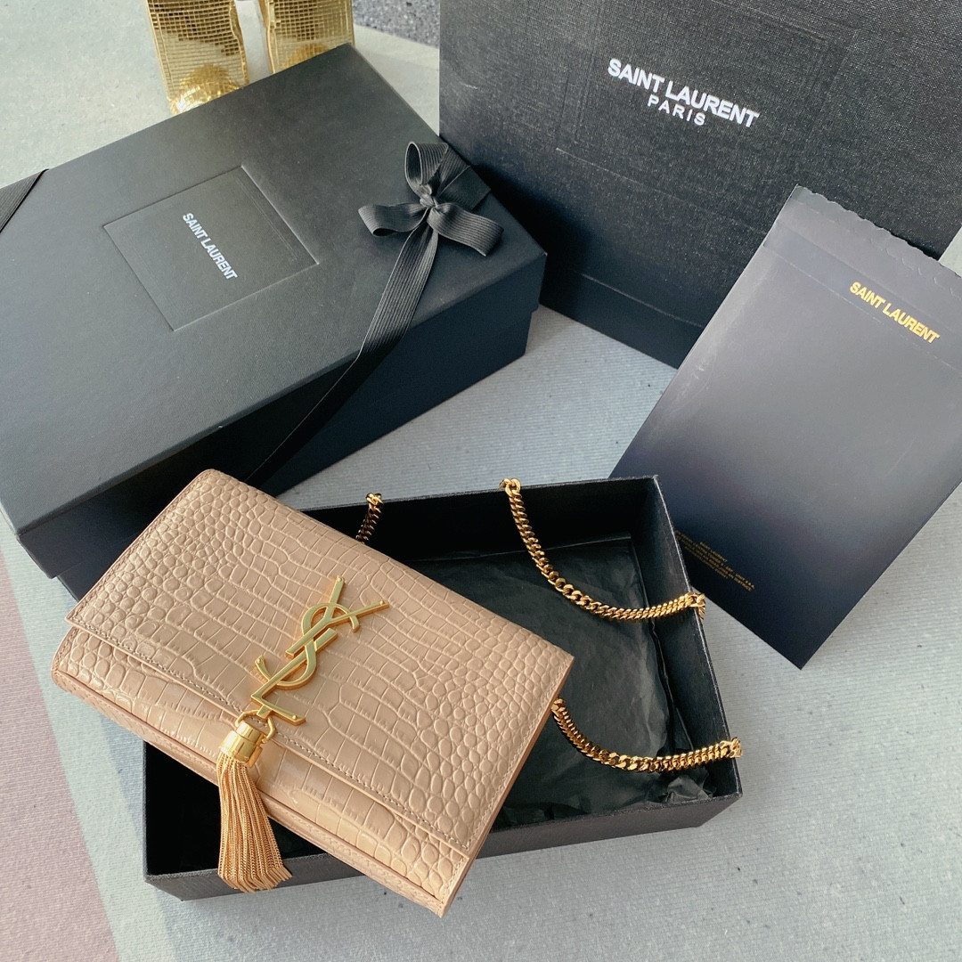 Y*L kate medium tassel in crocodile-embossed leather pink 9.4 x 5.7 x 2.1 inches