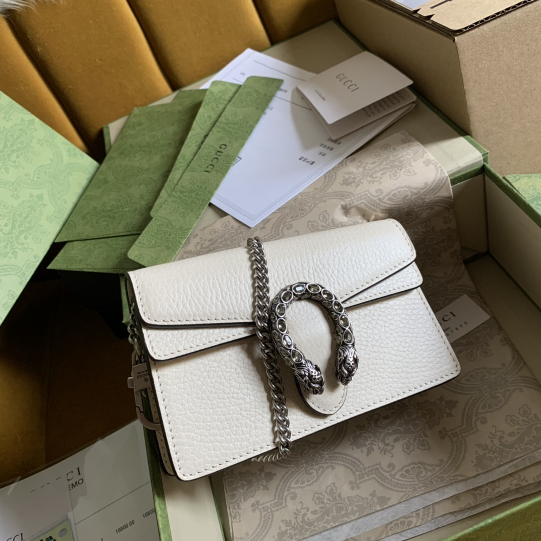 g*u*i dionysus leather S*per mini bag white 6.5"wx3.9"hx1.6"d